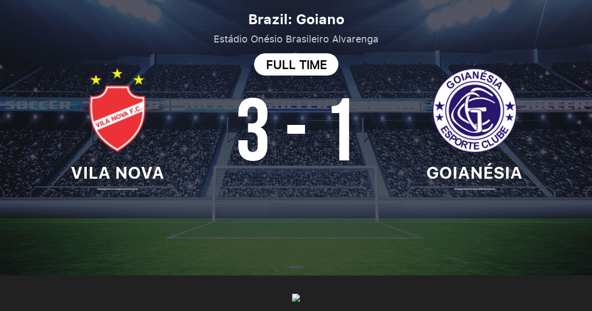 Goianesia GO scored 13 goals and conceded 12 in average. 33 Vila Nova vs Goianésias head to head record shows that of the 3 meetings theyve had Vila Nova has won 1 times and Goianésia has won 1 times. The initial Goals Odds is 20.