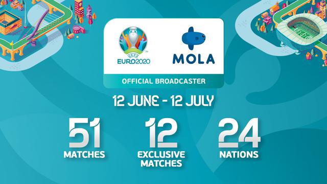 Slide 1 of 4. Indonesian streaming service Mola TV will show all matches from the UEFA Euro 2020 tournament.